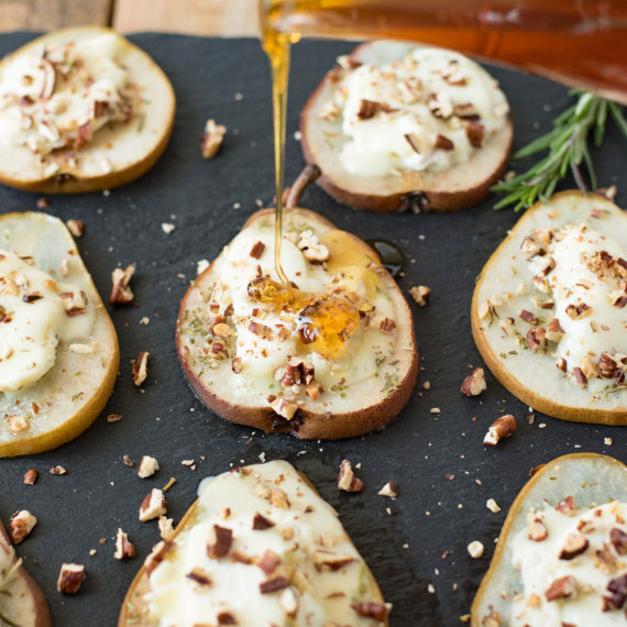 Pear Crostini with Florette Goat Cheese, Rosemary and Honey