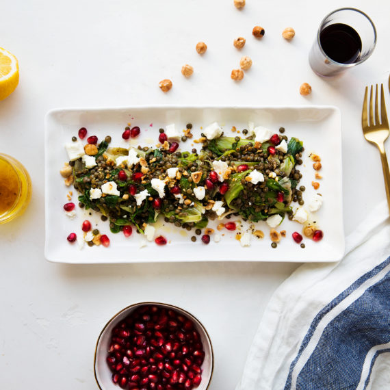 Warm Lentil Salad with Escarole, Pomegranate and Chèvre d’Or