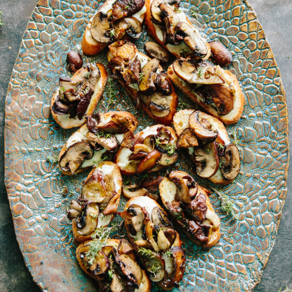 French Goat Cheese and Roasted Mushroom Crostini