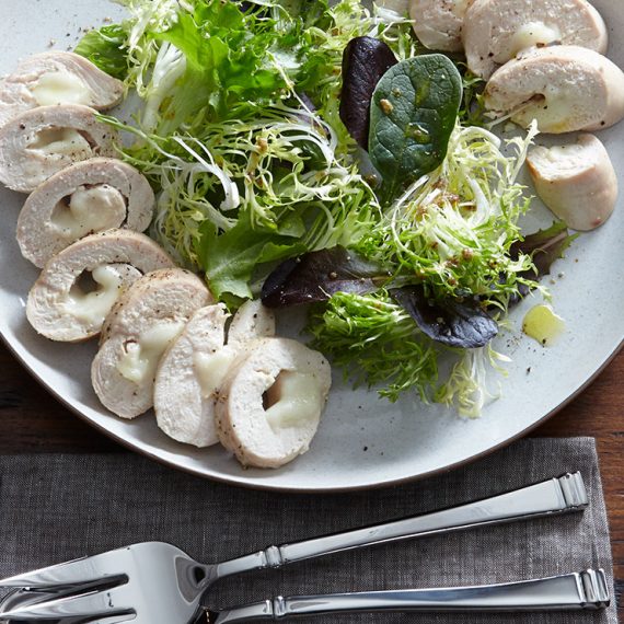French Goat Brie-Stuffed Chicken with Spring Greens