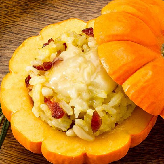 Mini Pumpkins Stuffed with Goat Brie & Rice